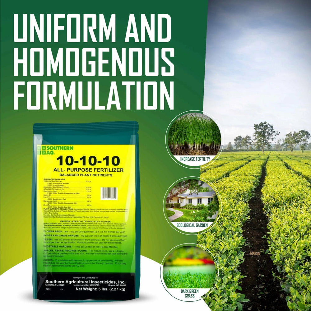 Give all your outdoor plants the balanced nutrition they crave with Southern Ag 10-10-10 All-Purpose Granular Fertilizer. This versatile formula provides equal parts nitrogen, phosphorus, and potassium, ensuring robust growth for everything from your vibrant flower beds to your lush lawn, thriving trees, and bountiful vegetable gardens. It’s the single, simple solution for an entire season of healthy, vigorous plants.